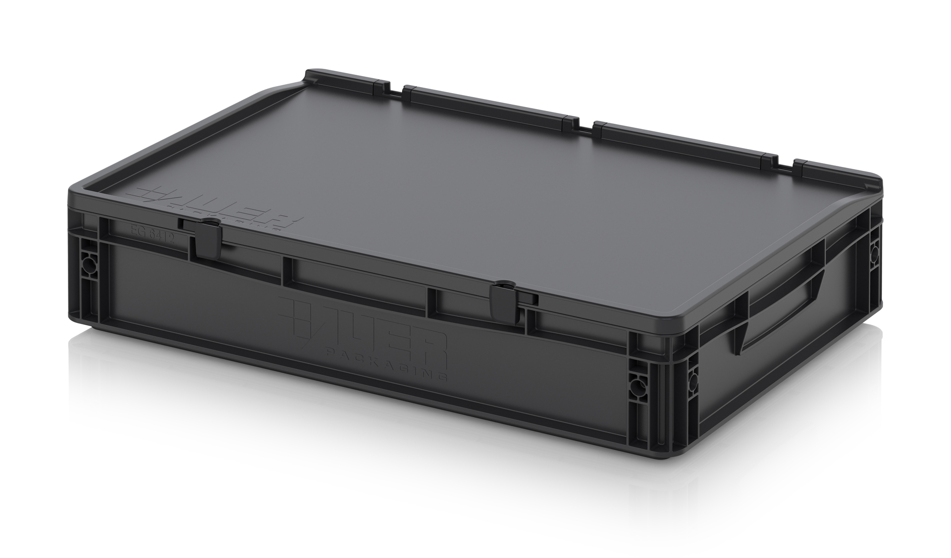 Евроконтейнер с ESD-защитой производства компании AUER Packaging изготавливается из антистатической пластмассы, что делает его пригодным, в частности, для надежного хранения и транспортировки электронной продукции.