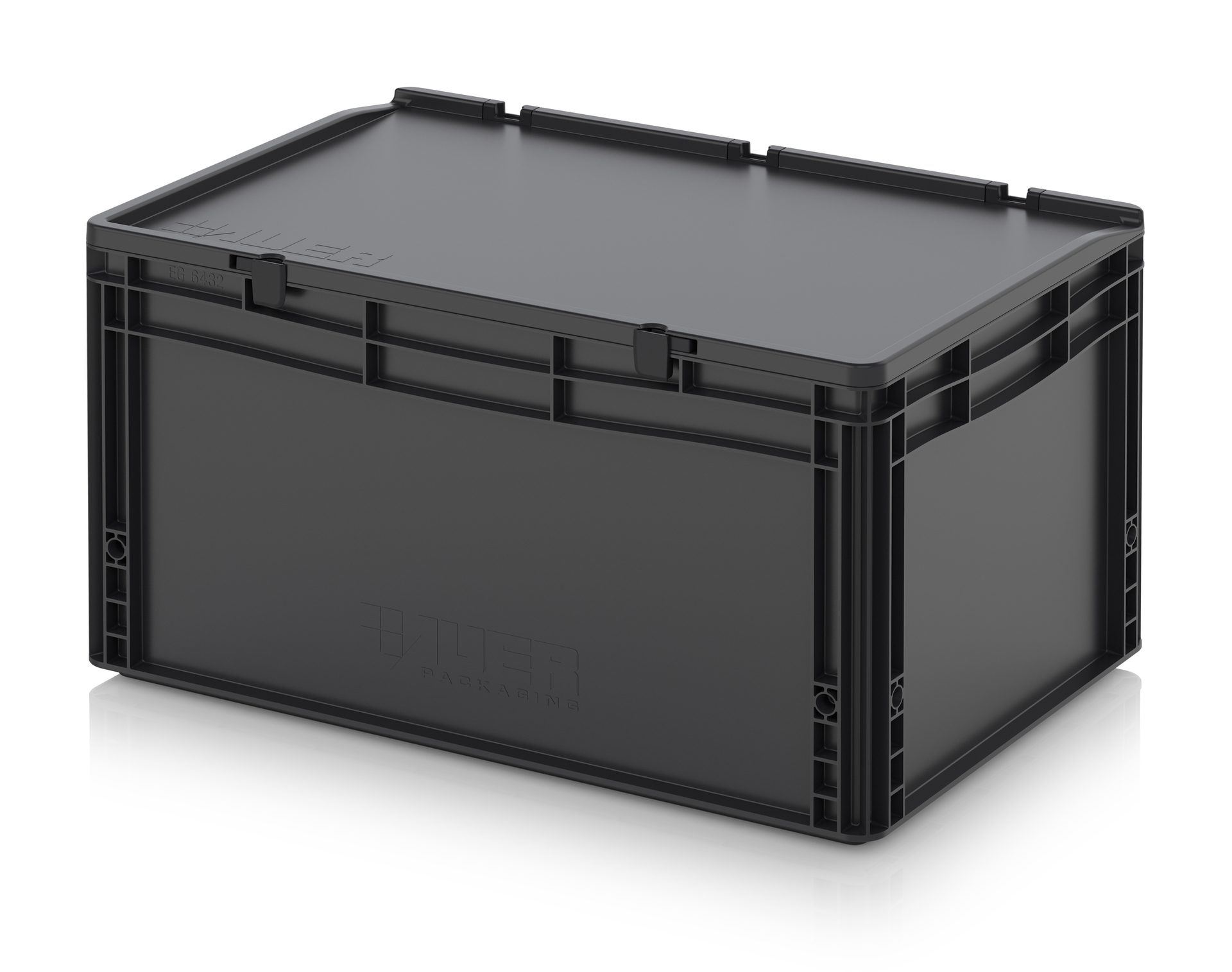 Евроконтейнер с ESD-защитой производства компании AUER Packaging изготавливается из антистатической пластмассы, что делает его пригодным, в частности, для надежного хранения и транспортировки электронной продукции.