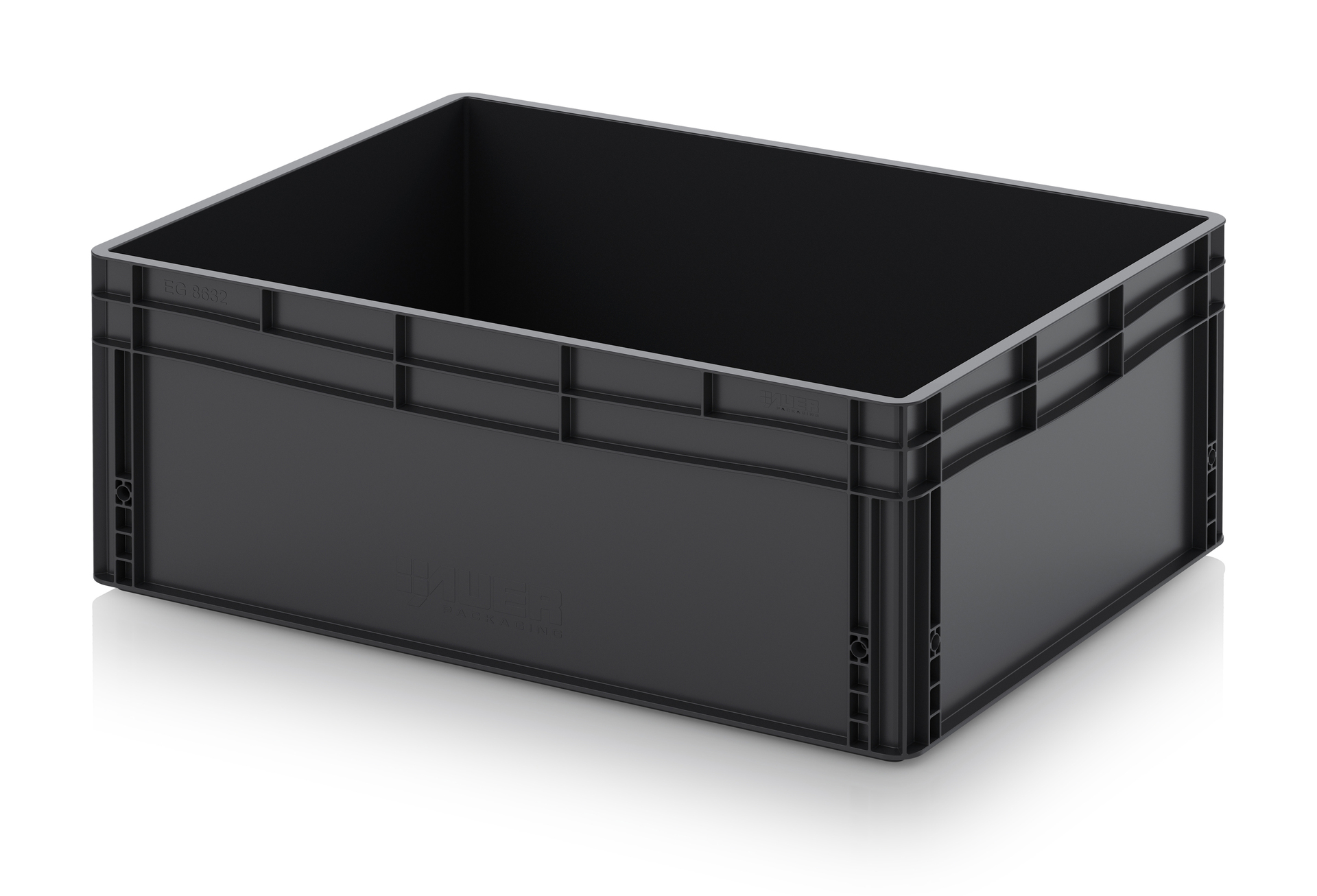 Евроконтейнер с ESD-защитой производства компании AUER Packaging изготавливается из антистатической пластмассы, что делает его пригодным, в частности, для надежного хранения и транспортировки электронной продукции.
