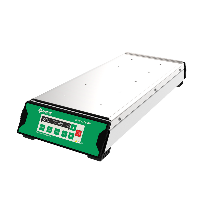 Магнитная мешалка ЭКРОС-6610Н предназначена для одновременного перемешивания жидкостей в нескольких сосудах. Точное распределение температуры по нагревательной пластине позволяет проводить серии параллельных экспериментов.